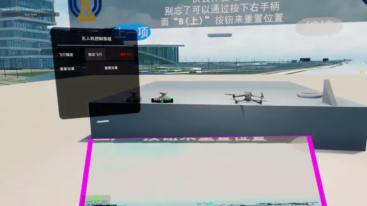 A VR drone training platform for the low-altitude economy, built on Unity. It supports single/multi-UAV teleoperation, rope-slung cooperative transport, and fire-extinguishing drills with water projectiles, with real-time telemetry visualization to cut training cost, supervised by Prof. Lei Chen